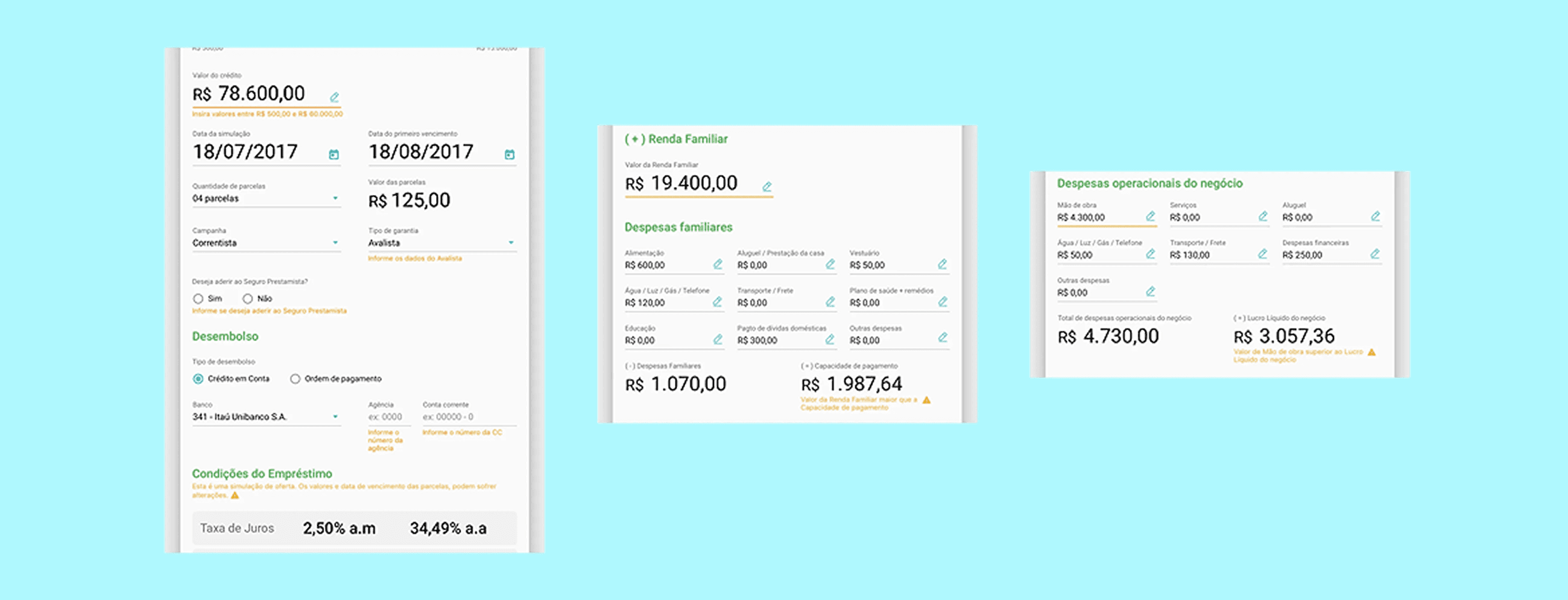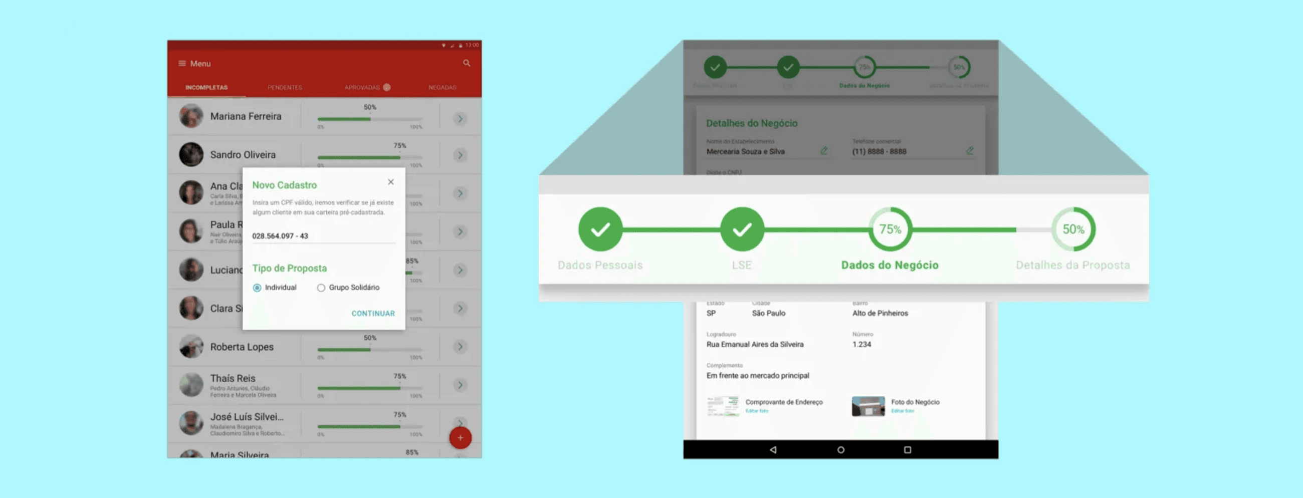 To complete a credit proposal, it was necessary to access more than one bank system. Once approved, the agent still had to return to the customer just to obtain a signature.